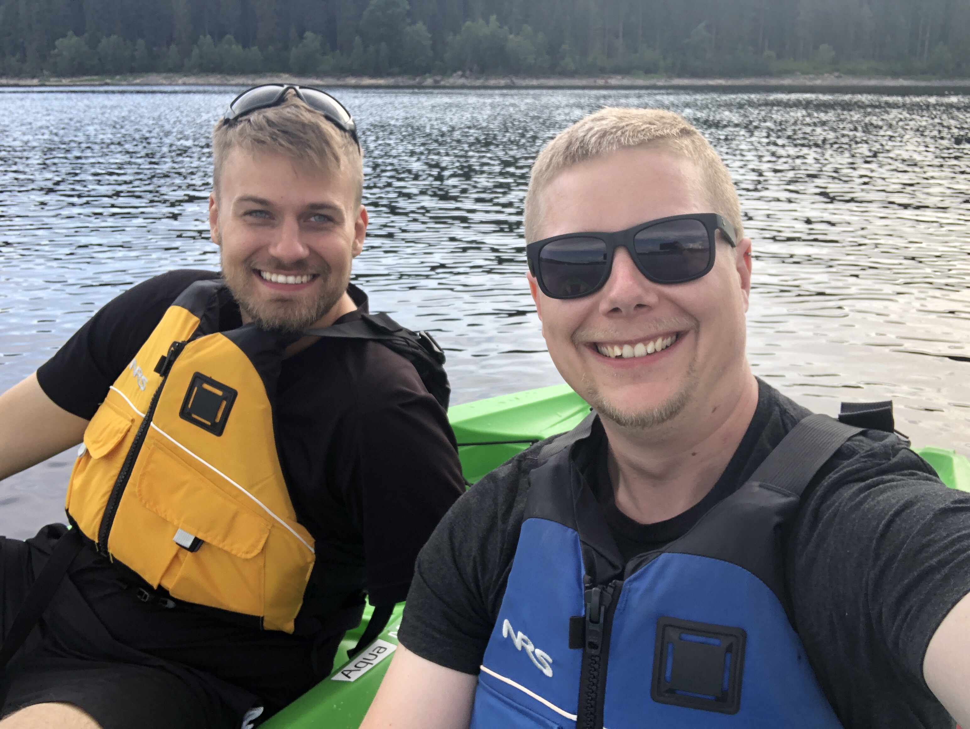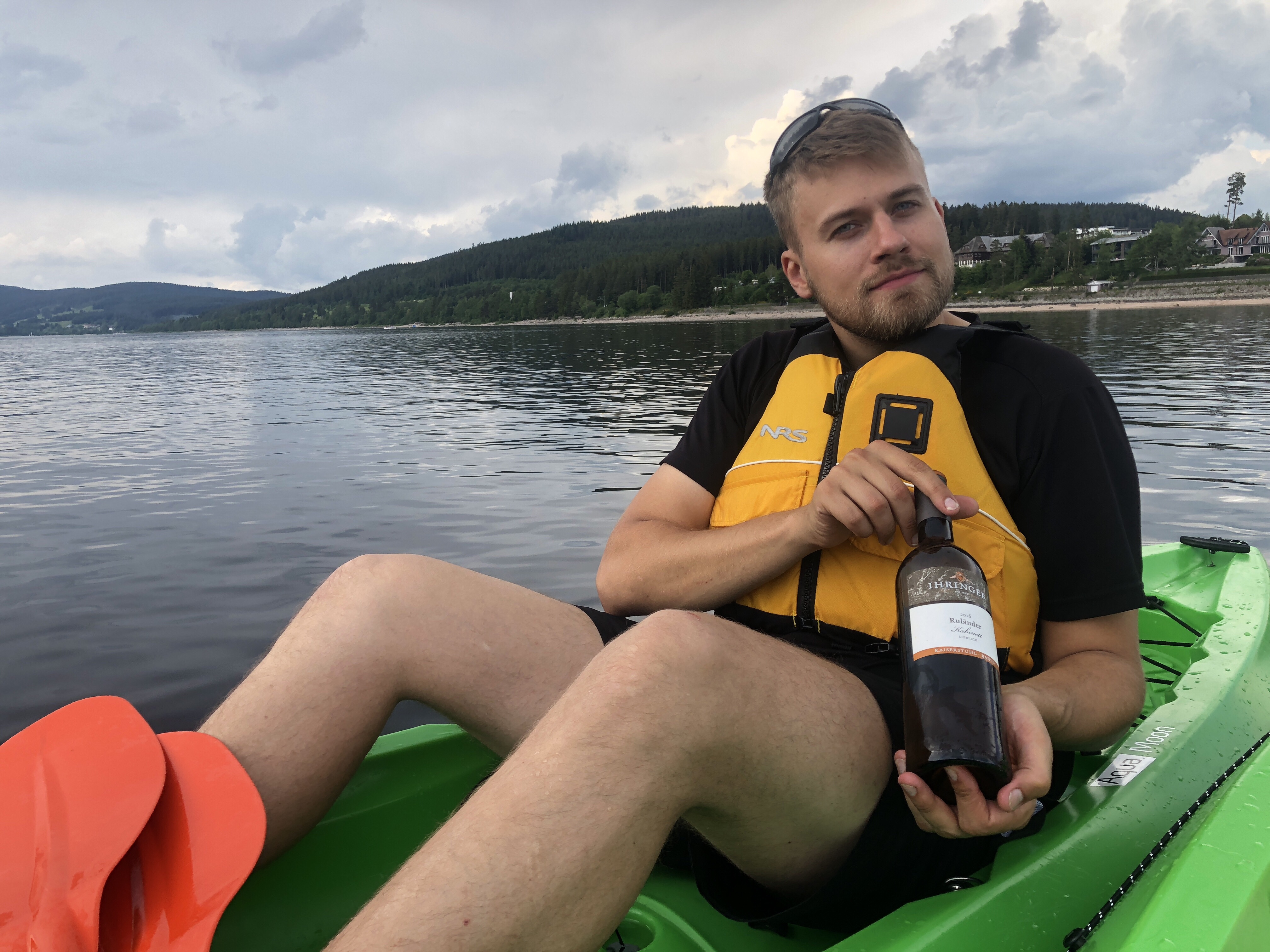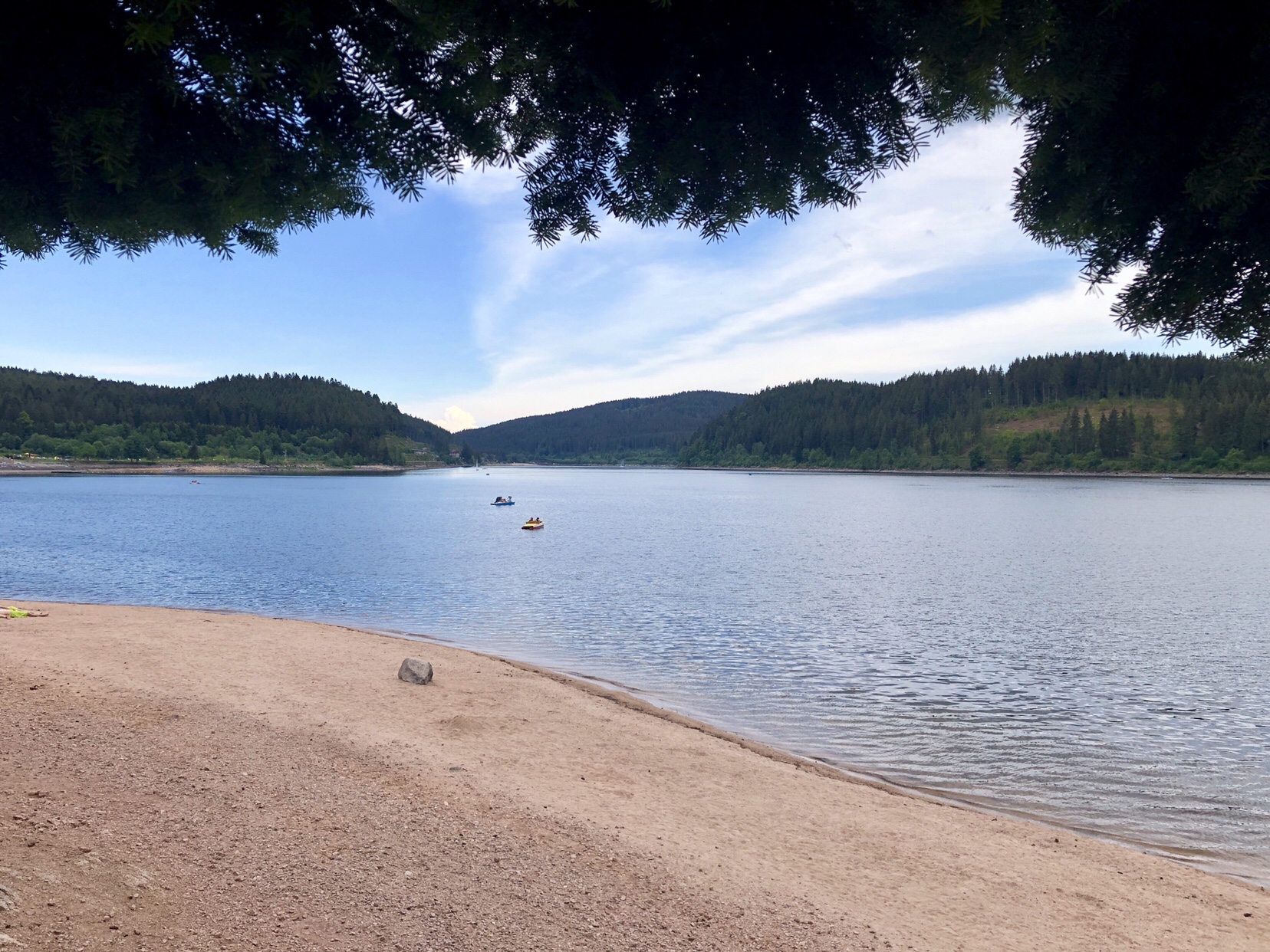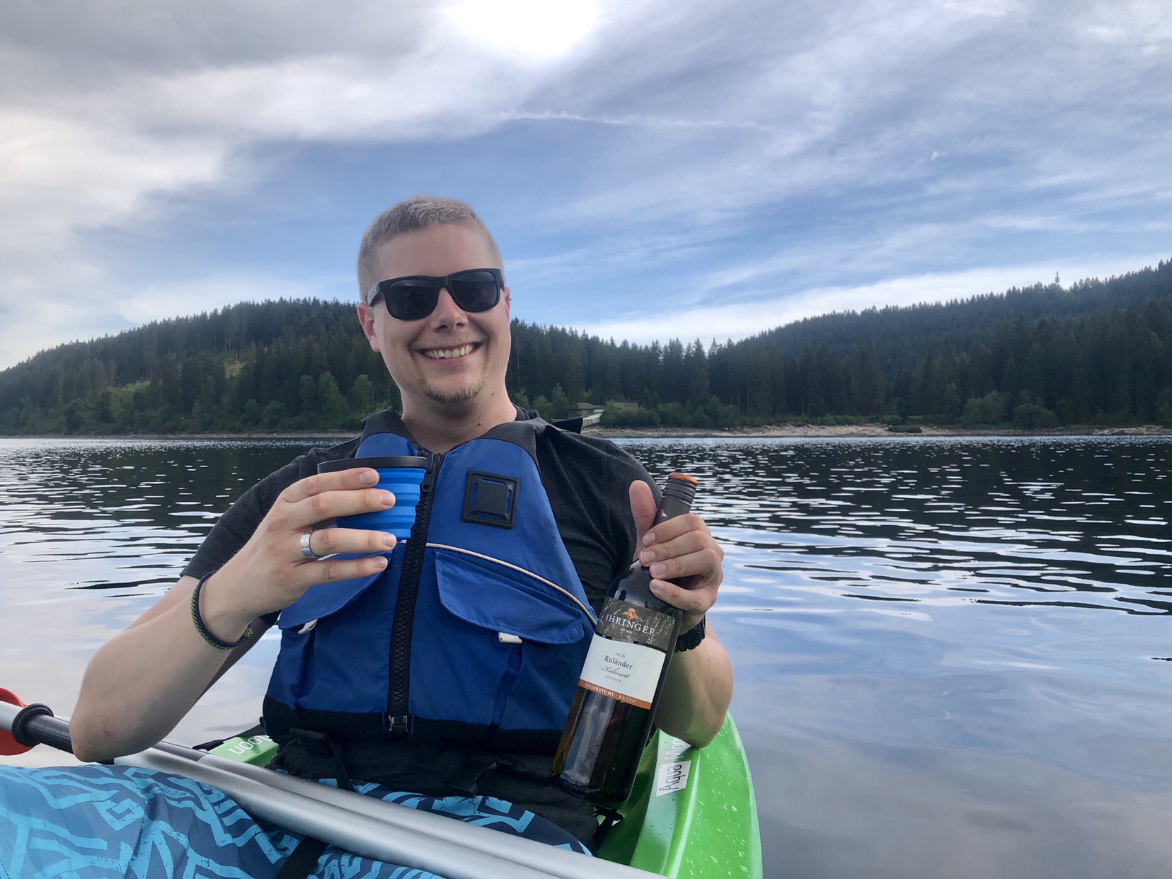 Gegen 16:00 Uhr waren wir dann wieder am Zeltplatz, machten uns frisch und liefen am Schluchsee entlang, zu einem Kajak Verleih. Hier konnten wir, auch wieder umsonst, eine Stunde Kajak fahren.