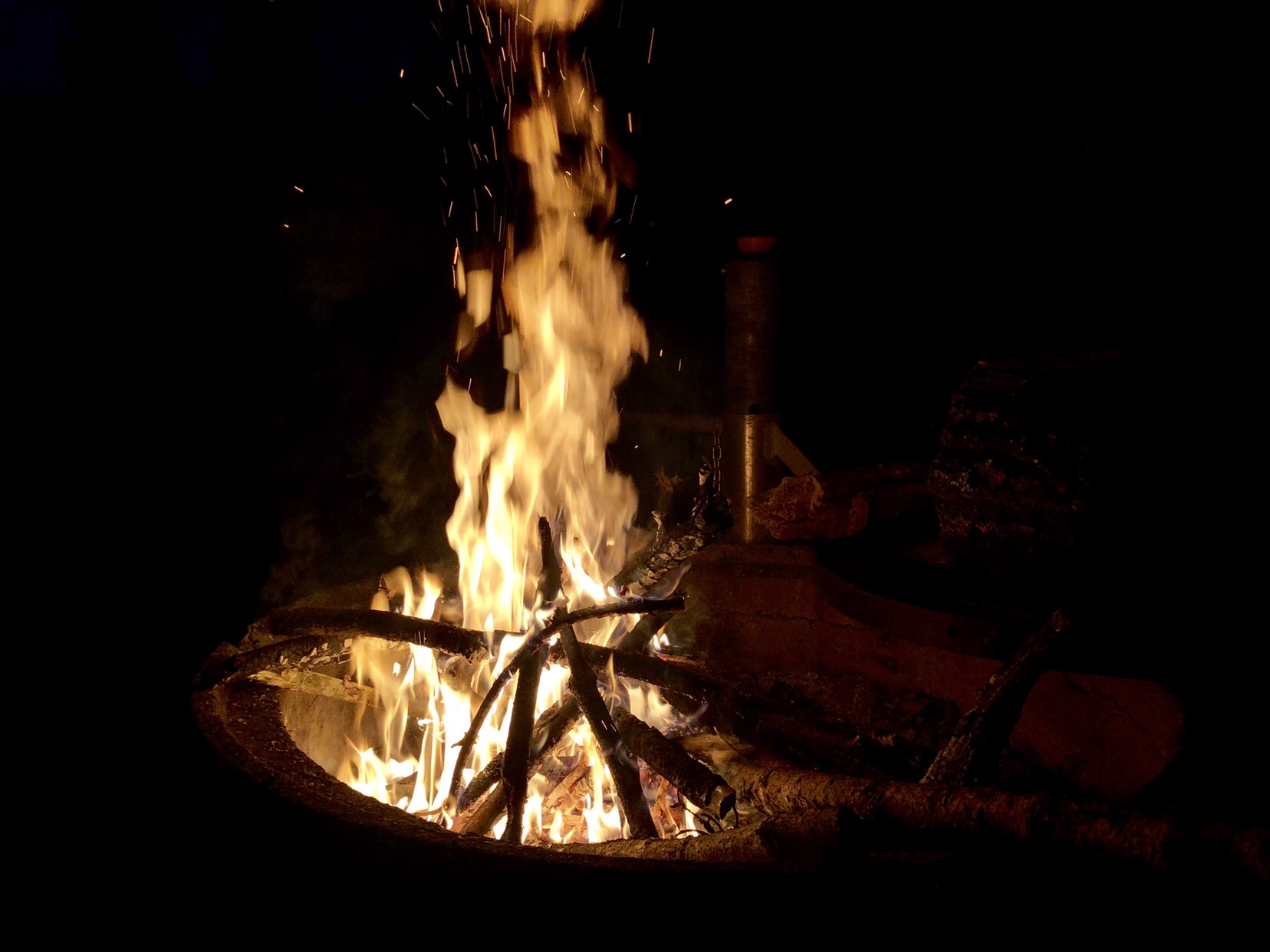 Danach saßen wir wieder im Restaurant des Campingplatzes und aßen zu Abend. Am Nachbartisch saß Jürgen, ein netter Fahrradfahrer, der von Lindenberg ins Elsass fährt. Gemeinsam ließen wir den Abend bei ein paar Bierchen und einem schönen Lagerfeuer ausklingen.