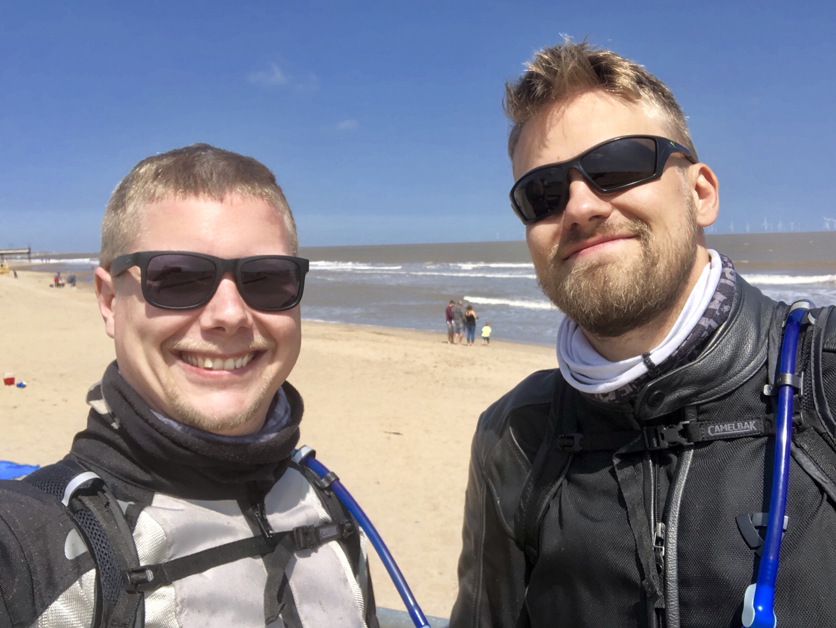 Der einzige Zwischenstopp den wir einlegten, war in Skegness am Strand. Kurz die Beine vertreten und dann weiter. Bis auf mehrere Pinkelpausen, die dem neuen Trinkrucksack geschuldet waren, saßen wir dann eigentlich nur noch auf dem Bock.