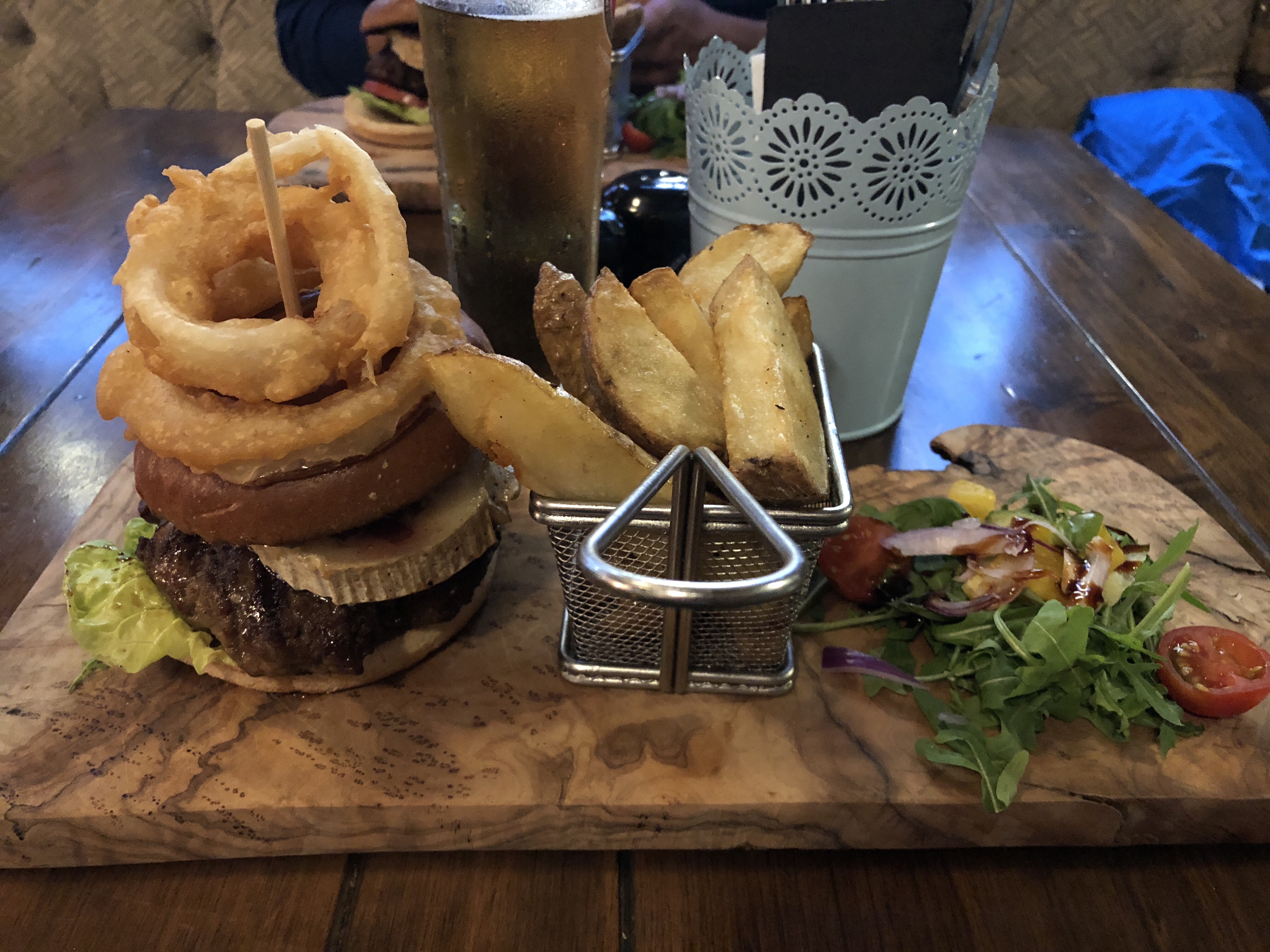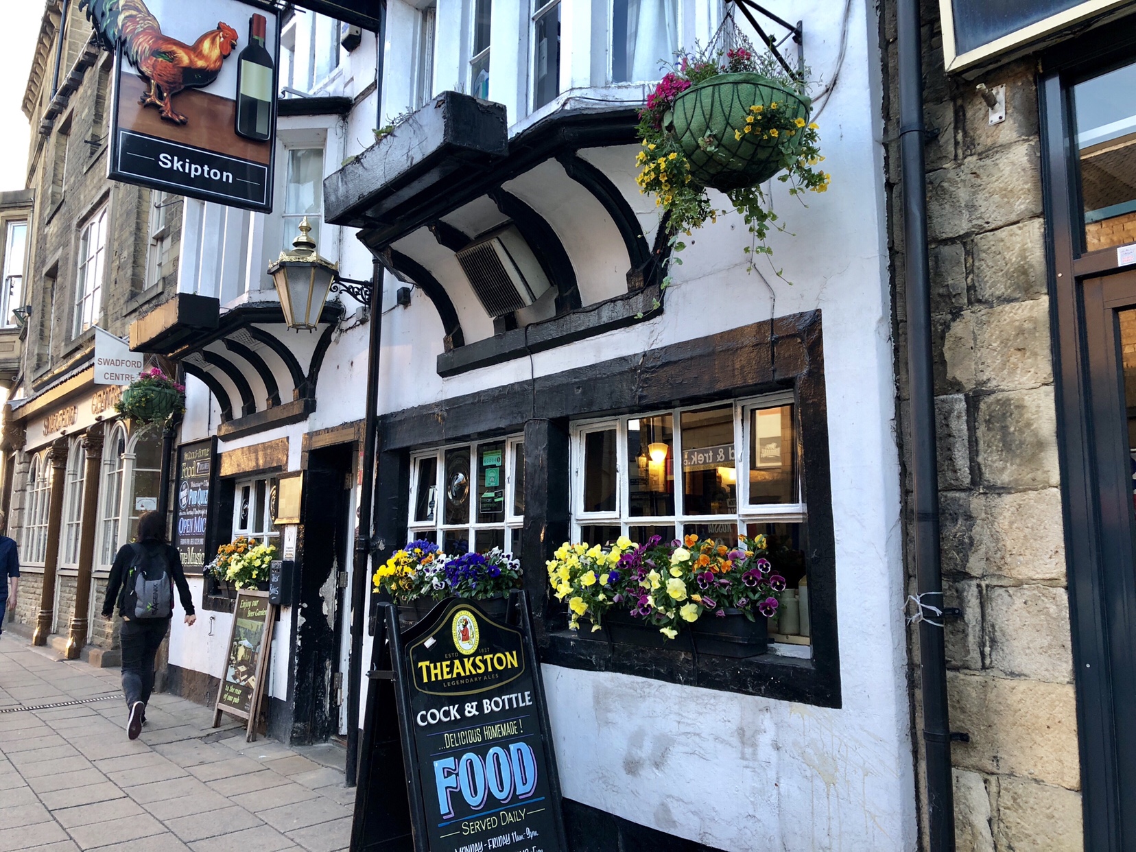 Jetzt sitzen wir in einem kleinen Pub, dem „Cock & Bottle“ in Skipton, hören Live Musik und genießen einen leckeren Burger mit Ziegenkäse. Das Leben ist so schön!