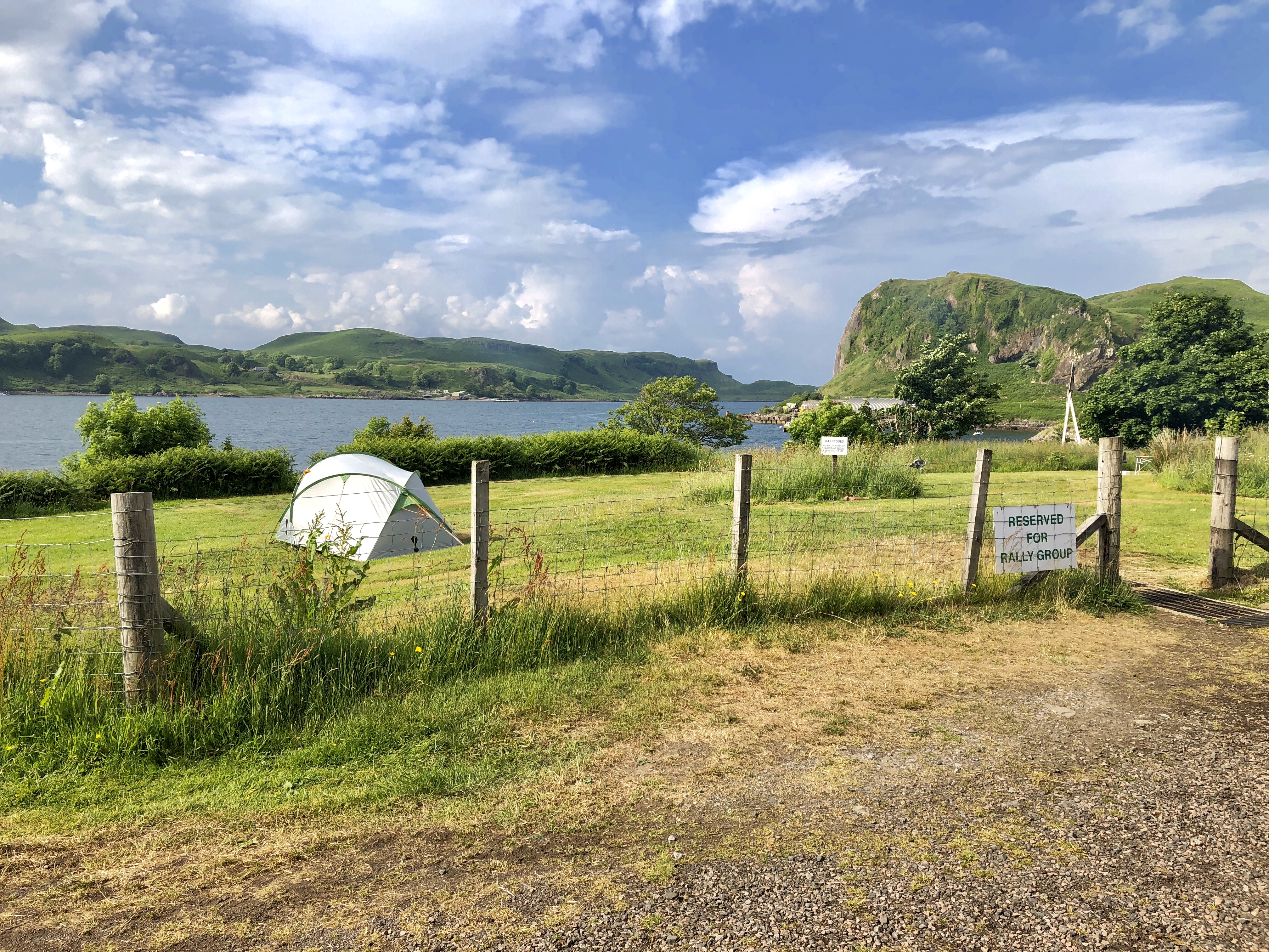 Unser Zelt steht nun auf einem kleinen Campingplatz außerhalb von Oban. Der Blick ist umwerfend.