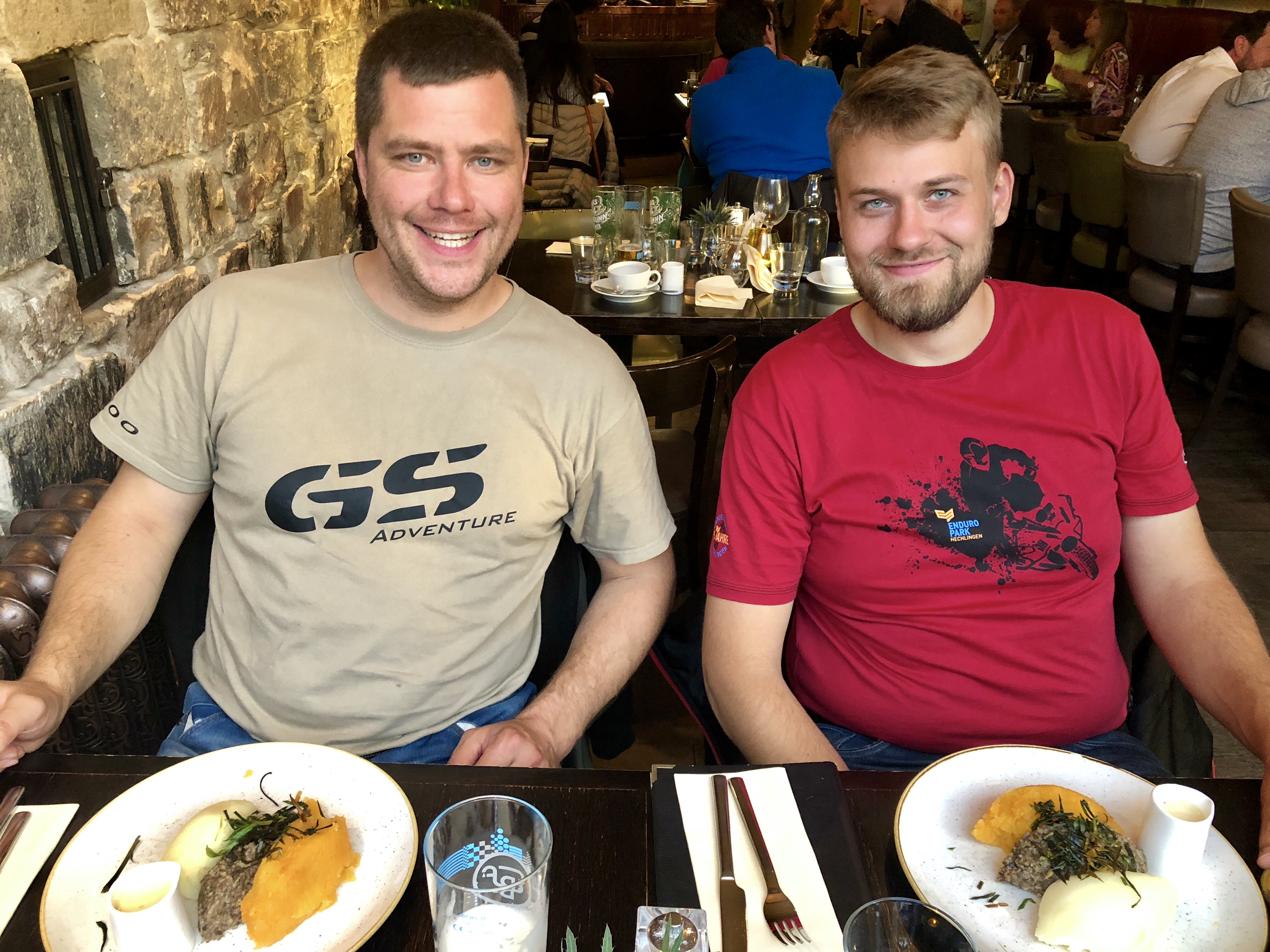 Um 20:00 Uhr trafen wir dann Olli und Jenny in der Stadt und gabelten danach noch Clarissa auf. Jetzt sitzen wir zusammen im Whiski‘s und genießen unseren letzten gemeinsamen Abend mit den beiden GS Fahrern. Nicco und Olli gönnten sich zum Abschluss noch Haggis. Schmeckt wirklich lecker!