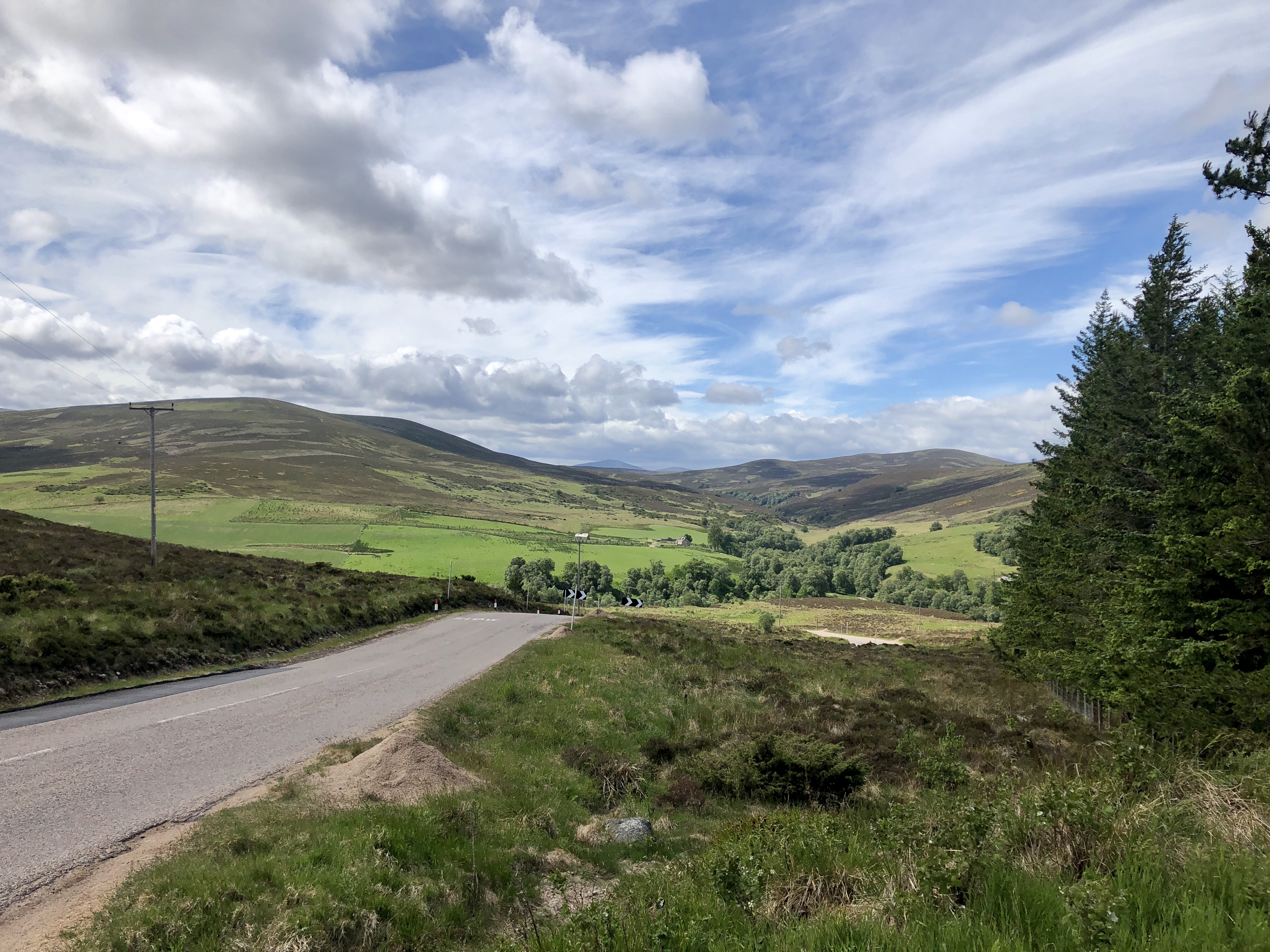 Um 10:00 Uhr starteten wir am Loch Ness und fuhren schöne kleine Sträßchen Richtung Süden. Richtig faszinierend war heute die A93, die uns durch die Schottischen Skigebiete führte. Hier trafen wir wieder unsere alten Bekannten: Schotter, Schlagloch und Schaf. Definitiv nichts für Anfänger, die Straßen in Schottland. Zwischendurch hielten wir mal wieder bei einer Destillerie „Tomatin“.