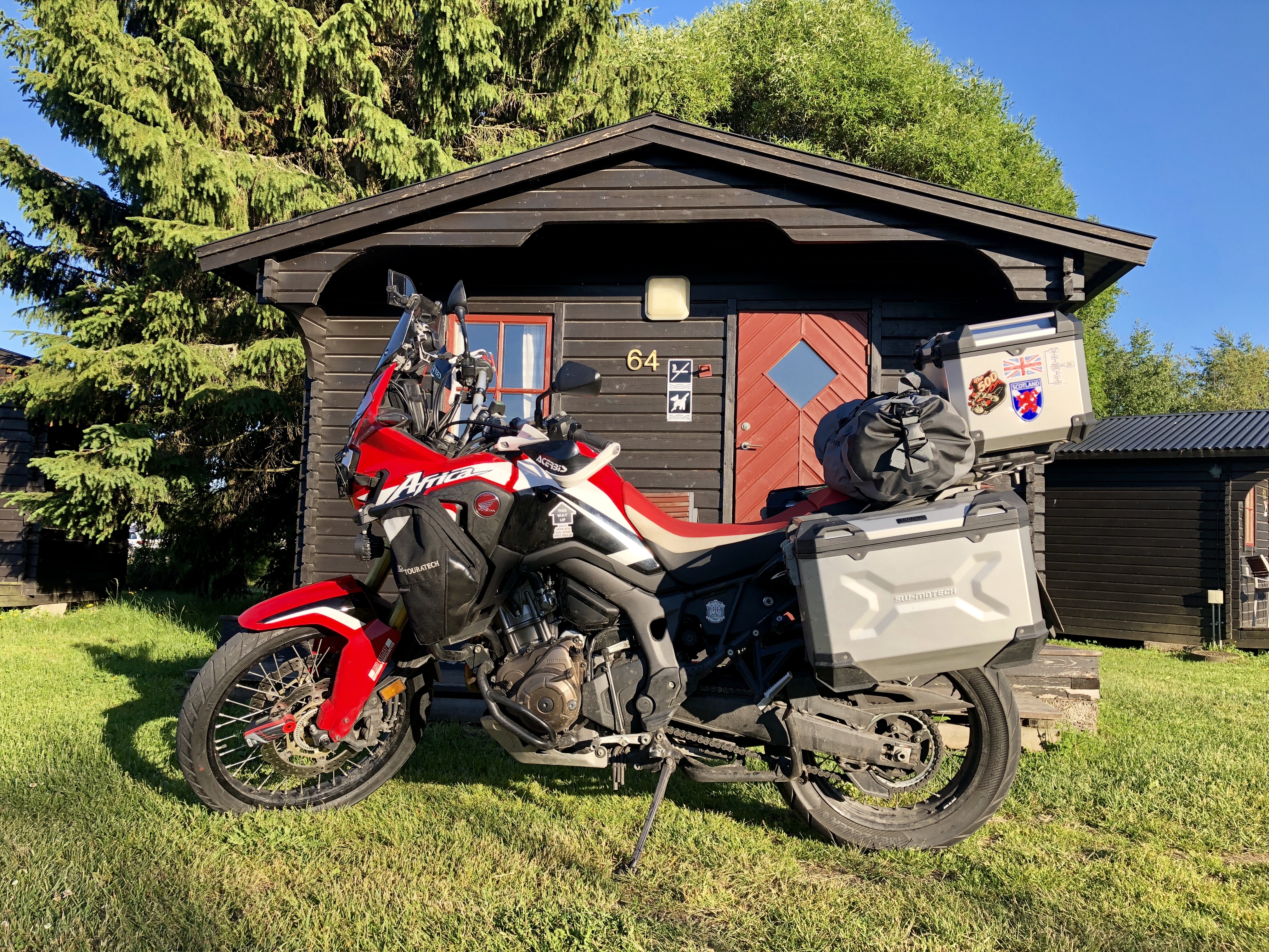 Nun, am Ende des Tages, bin ich gute 700 km gefahren. Erstaunlich wie viel Strecke man schafft, wenn man im Rhythmus ist und alleine fährt. Auf jeden Fall sitze ich jetzt in Umeå vor meiner kleinen Hütte (wieder mal nicht arg viel teurer als ein Zelt) und genieße die Abendsonne.