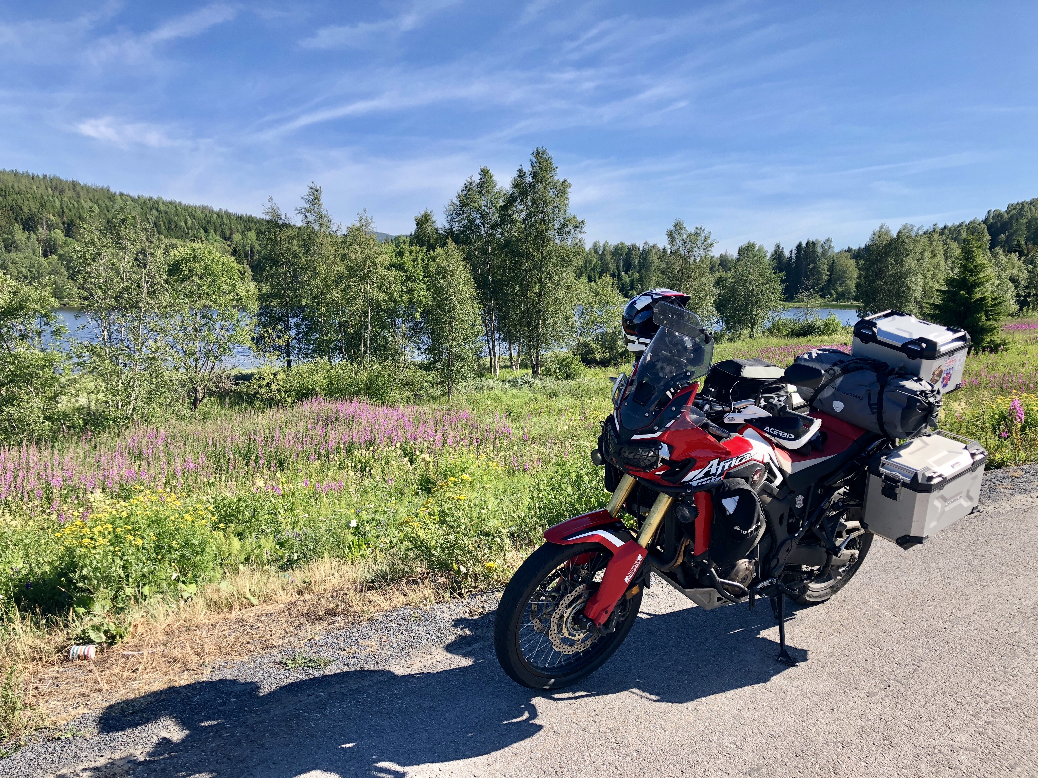 Gestern Abend traf ich auf dem Campingplatz noch ein paar Biker aus der Region Ingolstadt, die gerade vom Nordkapp kamen und durch schlechtes Wetter auf der Rückreise, wieder von Norwegen nach Schweden wechselten. Zusammen aßen wir noch gemütlich zu Abend und genossen den Sonnenuntergang.